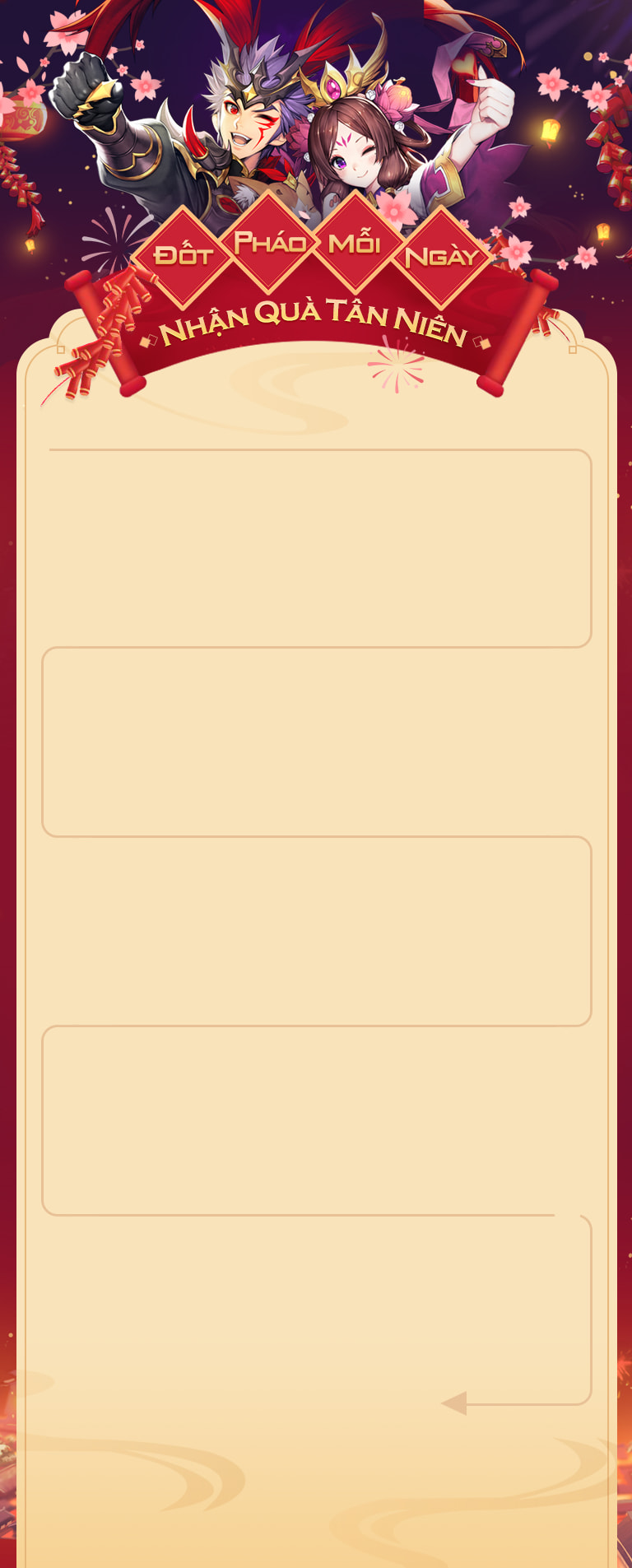 ĐỐT PHÁO MỖI NGÀY NHẬN QUÀ TÂN NIÊN: sự kiện chào đón năm mới từ Thiếu Niên 3Q để gửi đến các Tướng Quân đã, đang và sẽ gắn bó cùng Tiểu Bo các phần thưởng MIỄN PHÍ.